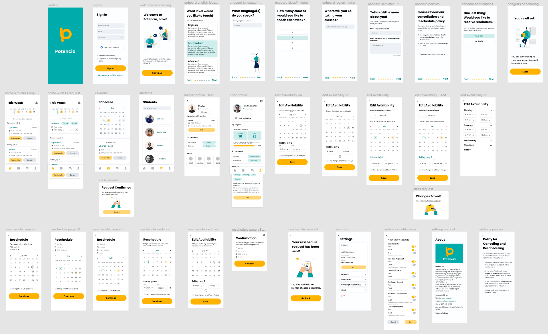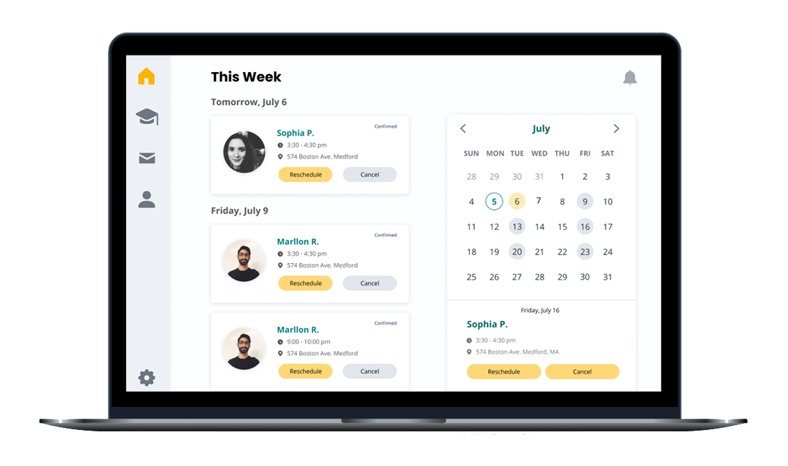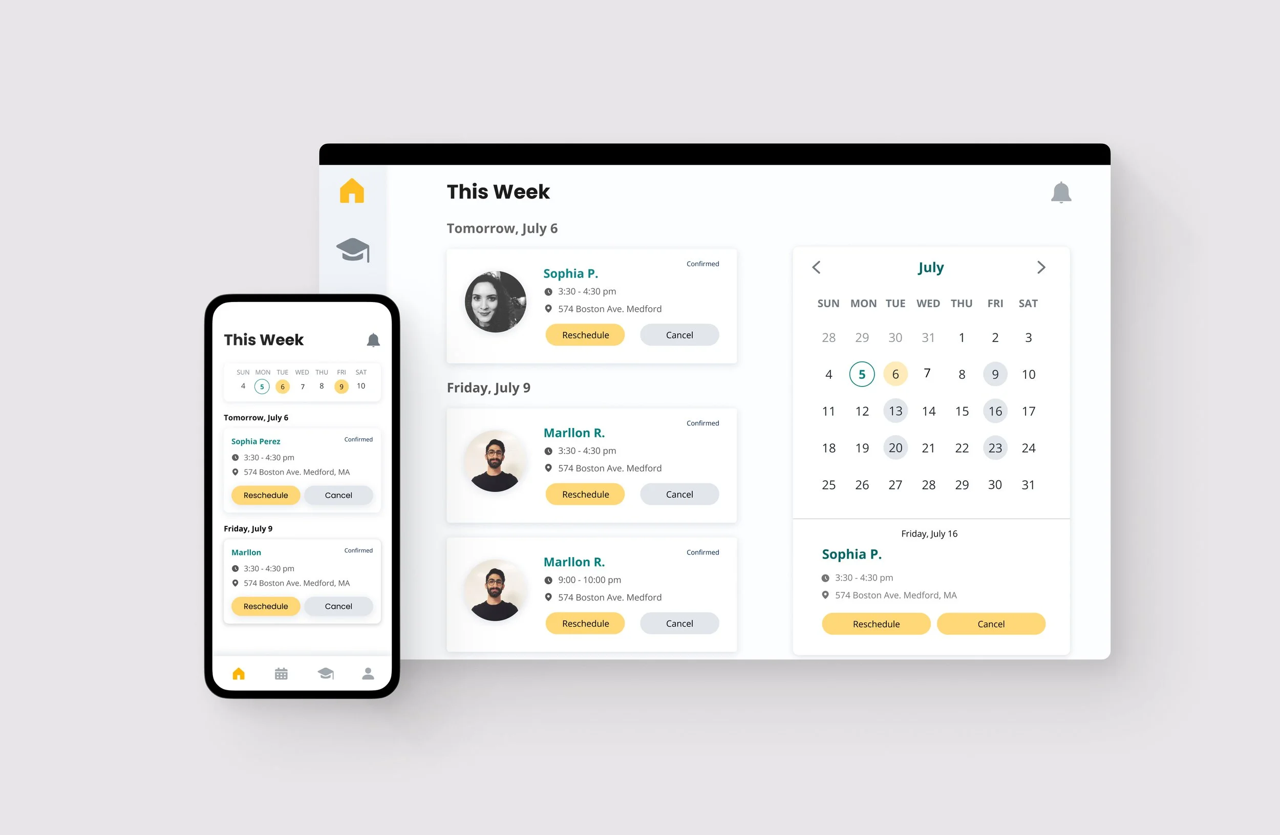 Our goal was to streamline communication between tutors and learners while supporting the future growth of the organization. To achieve this, we designed Potencia's first web app, focused on simplifying class management. The app enables tutors and learners to easily schedule, reschedule, and cancel sessions, view their schedules, and receive customizable notifications.