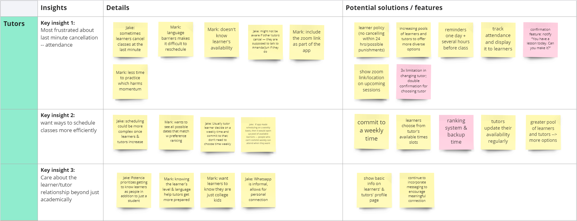 To better understand the challenges within the existing class scheduling system, we interviewed tutors and learners who had taught or learned English at Potencia.