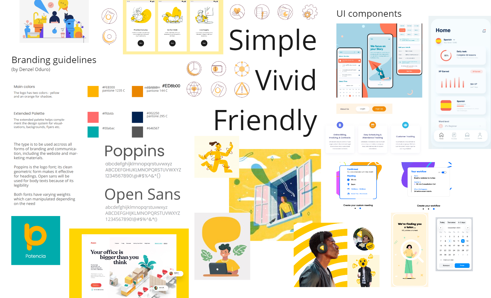 After sorting user feedback, we built the high-fi prototype and conducted the second round of user testing. We also developed a mood board to document Potencia's current branding guidelines and collect inspirational elements.