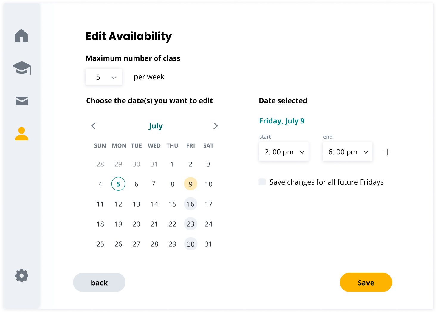 We tested our hi-fidelity design with the users, and both tutors and learners found the design very clean and intuitive to navigate.